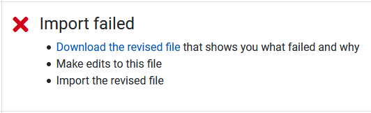 Click the Download the revised file link to save the file. Open and review it carefully, make the necessary changes and repeat the importing process again.